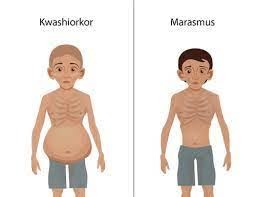 Marasmus: Young children and infants are vulnerable to consequences of lack of protein. Marasmus is a severe lack of important nutrients. People affected by marasmus look frail and thin. This is a fatal disease that causes weight loss, and dehydration.