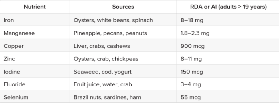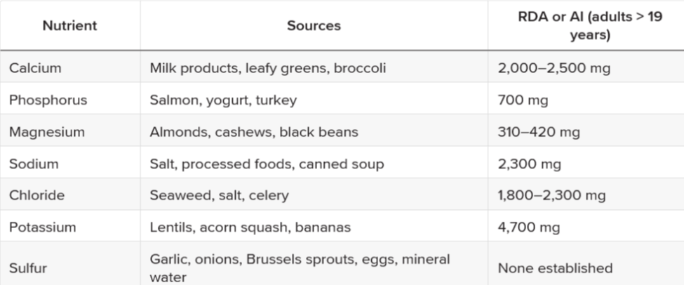 - macrominerals, and trace minerals.