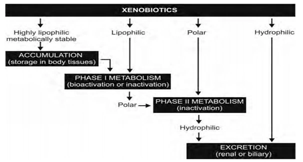 - Drugs are also xenobiotics which enter the body by virtue of theirlipophilicity. It is interesting to note that for effective absorption, a drug needs to be sufficiently lipid soluble, but it is this same physicochemical property that enables it to bypass excretion.