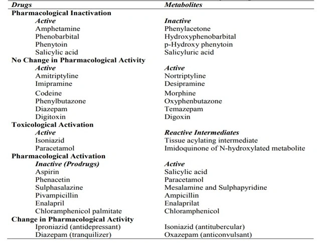- Inactive drugs (prodrugs) also depend upon biotransformation for activation, the process being called as pharmacological activation; A change in pharmacological activity of the drug on metabolism has also been observed.