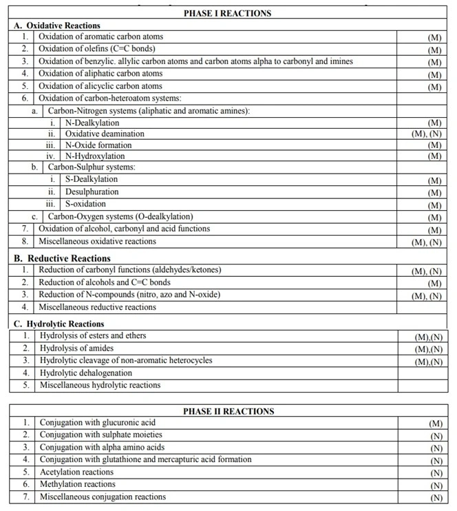 TABLE 2. Chemical Pathways of Drug Biotransformation — (M) and (N) Indicate Reactions Catalysed by Microsomal and Non-microsomal Enzymes.