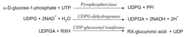 The steps involved in glucuronide synthesis are depicted below: