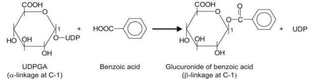An example of glucuronidation of benzoic acid is shown below.